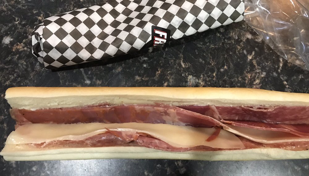 BACON, HAM & PROVOLONE, pickle, mayo & yellow mustard